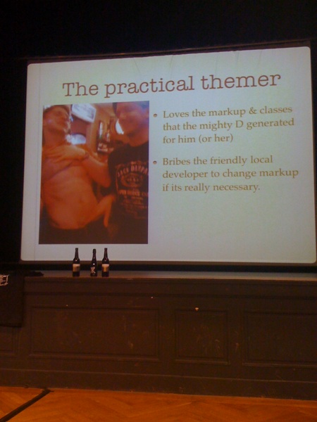 I attended several sessions, most of them had been interesting and confirmed me in my way of working, one was really boring because of the way how it was presented (I guess the presenter bored himself) and two inspired me to write a submission for the next Drupal event in Vienna.