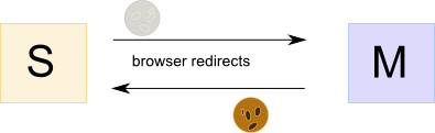 If you login on slave S, it will forward the username and password to the Bakery master M in Oatmeal via a browser redirect. The Bakery master does some checks, logs in the user and creates a Chocolatechip cookie only to redirect the user back to the slave. The slave checks the Chocolatechip cookie, updates relevant information and logs the user in.
